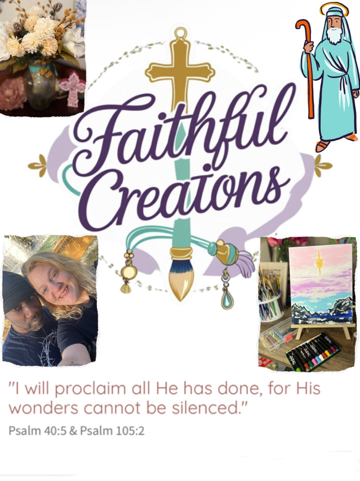 At Faithful Creations, our Christ-centered journey inspires every brushstroke and crafted piece. Based in Nacogdoches, Texas, we're a big, blended family blessed with creative gifts from God - and we're passionate about sharing them with others through our painting, floral designs, and jewelry-making services.